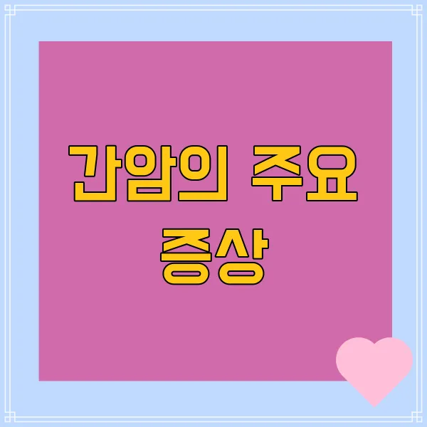 간암은 조기에 발견하기 어려운 경우가 많기 때문에, 그 증상을 파악하는 것이 중요합니다. 간암의 주요 증상은 여러 가지가 있지만, 가장 일반적으로 발견되는 몇 가지를 살펴보겠습니다.